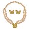 Collana in corallo rosa 'poe d'ange' nel centro il filo si sdoppia e si chiude su una farfalla in oro giallo che funge da chiusura.