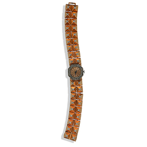 MOVADO - Orologio bracciale in oro rosso da donna anni 40 con bracciale a doppio binario a motivo piramidale sormontato da piccoli diamanti 8/8 al vertice.