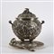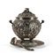 F.LLI A. & C. BAGLIANI - Grande zuppiera in argento 800 composta da piatto pentola coperchio e mestolo. Totalmente sbalzato in alto rilievo finemente inciso a rappresentare scene di caccia.