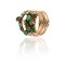 Anello in oro rosso a 5 piccole fedine collegate sul gambo piccoli turchesi verdi cabochon ornano le teste.