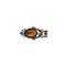 Spilla in oro giallo ossidato al centro grande pietra semipreziosa ovale color miele contornata di piccole perline.