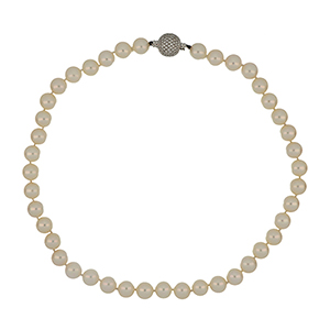 Girocollo di perle giapponesi coltivate fermezza in oro bianco a foggia di pallina interamente pavettata con piccoli diamanti taglio brillante per ct. 2 50 ca.