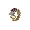 Anello in oro giallo e bianco il gambo a maglia snodata romboidale è sormontato da due navette a contrariè realizzate con pavè di diamanti e rubini rispettivamente ct. 0 60 e ct. 0 70 ca.