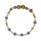 Girocollo in oro giallo a tema marino perle coltivate intercalate a calcedonio lilla e boule di oro giallo rigate si chiudono al centro con due conchiglie in oro e due piccoli diamanti taglio brillante.