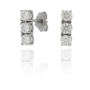 Orecchini in oro bianco con 3 diamanti taglio brillante per complessivi ct. 0 70 ca perno e scatto a lobo.