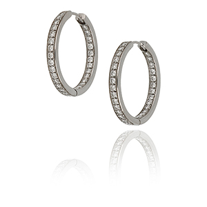 Orecchini in oro bianco ad anelle classici ed eleganti con diamanti taglio brillante sul fronte e su tutta la parte interna ct. 1 20 ca. incernierati nella parte bassa si chiudono sul lobo con perno lucido.