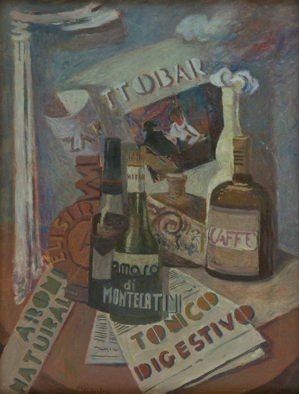 Giuseppe Manfredi (Seravezza (Lu) 1934 - Montecatini Terme (Pt) 1987) NATURA MORTA, 1981 Olio su cartone, cm. 78x60 Firma e data in basso a sinistra.