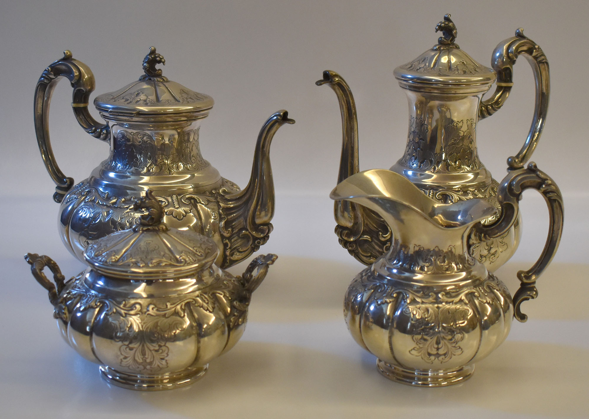 Servizio 4 pezzi in argento composto da teiera. caffettiera lattiera e zuccheriera gr.3375