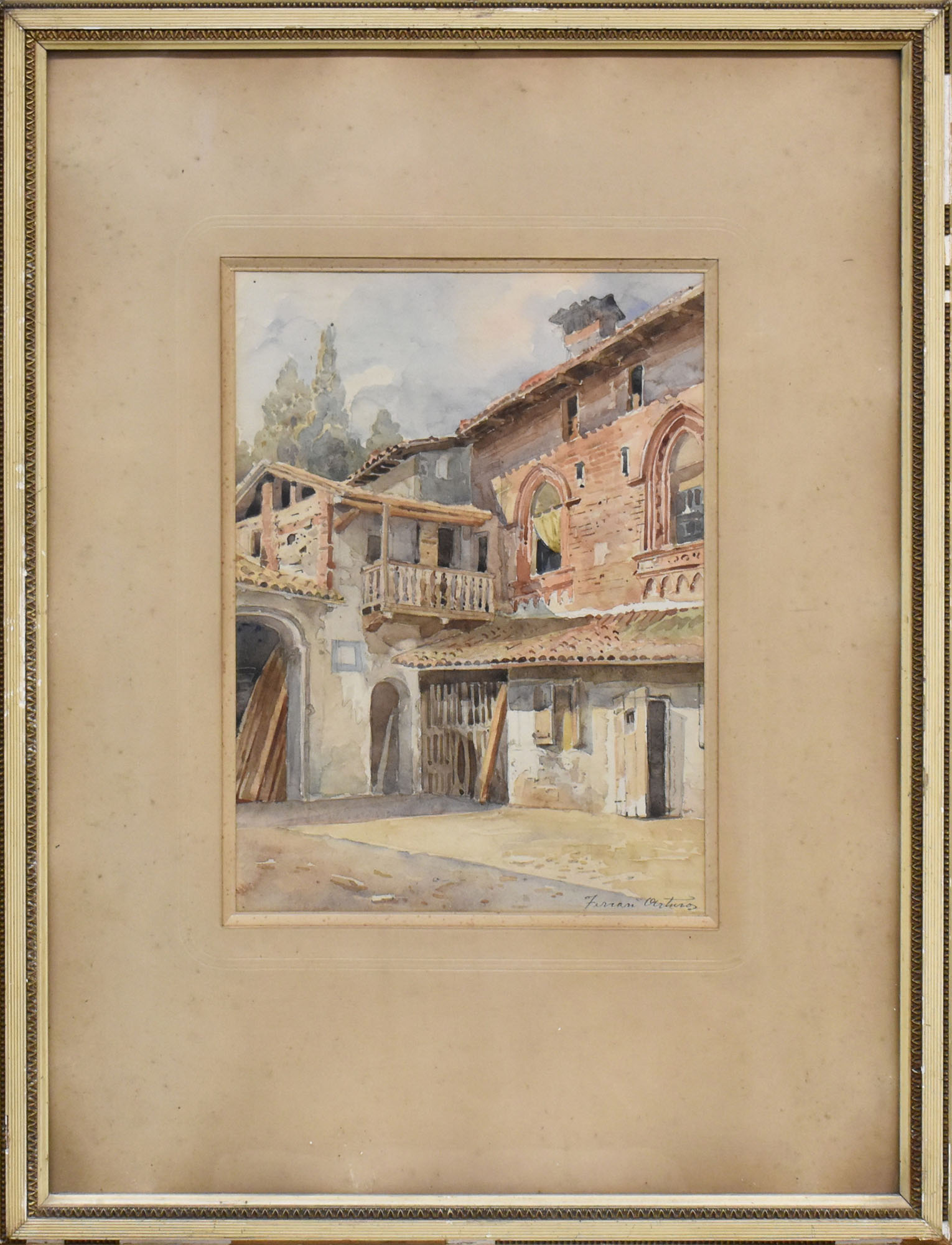 Arturo Ferrari 'Interno di cascina' acquerello firmato in basso a destra