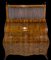 Ribalta a rullo con alzata in mogano fronte a tre cassetti calatoia con piano scrittoio estraibile rivestito in pelle cassettini ed antina interni alzata con anta orizzontale a serrandina e vani interni piedini mossi Olanda sec.XIX