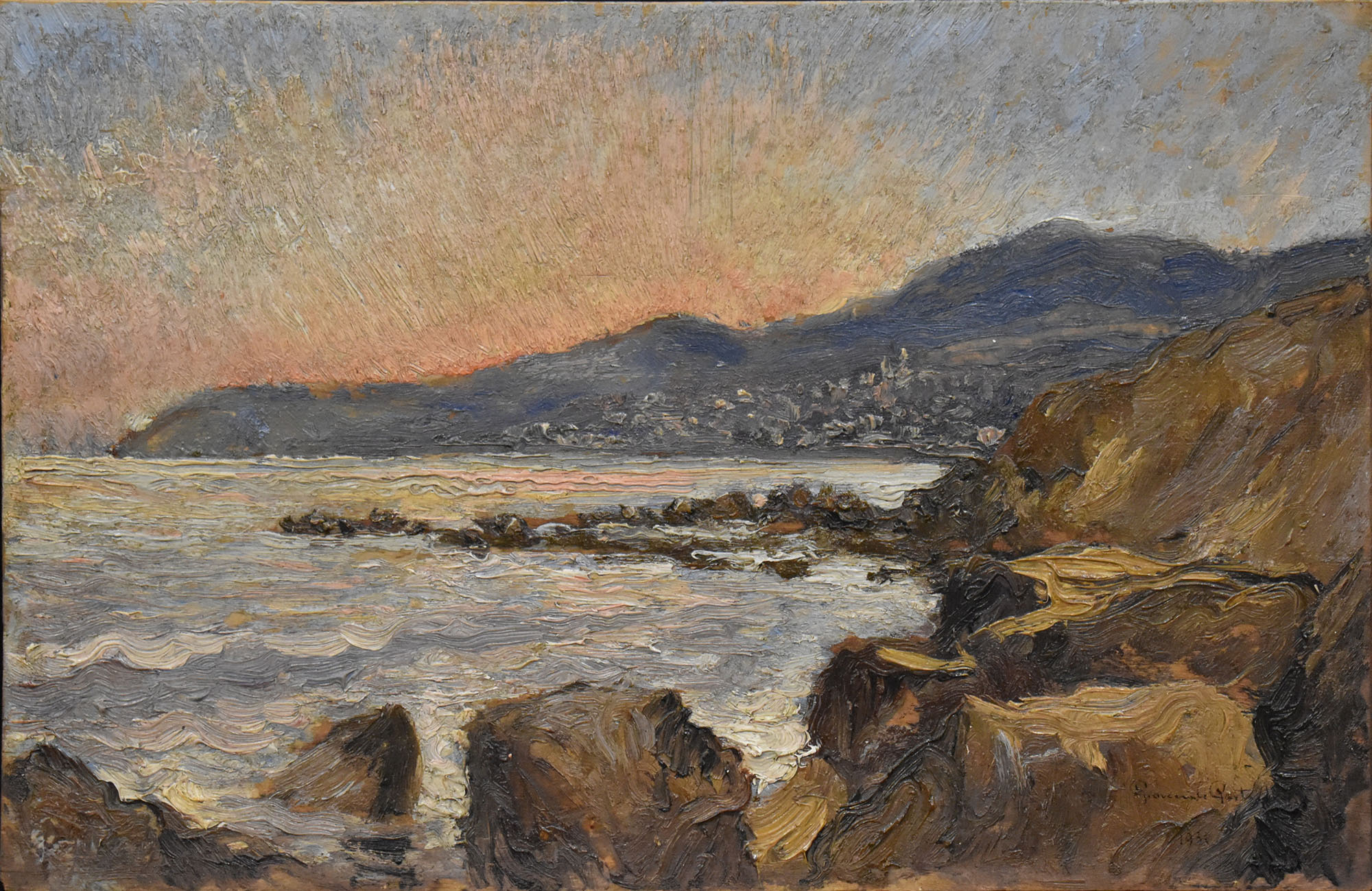 Giovenale Gastaldi 'Scorcio di Sanremo' olio su compensato firmato in basso a destra