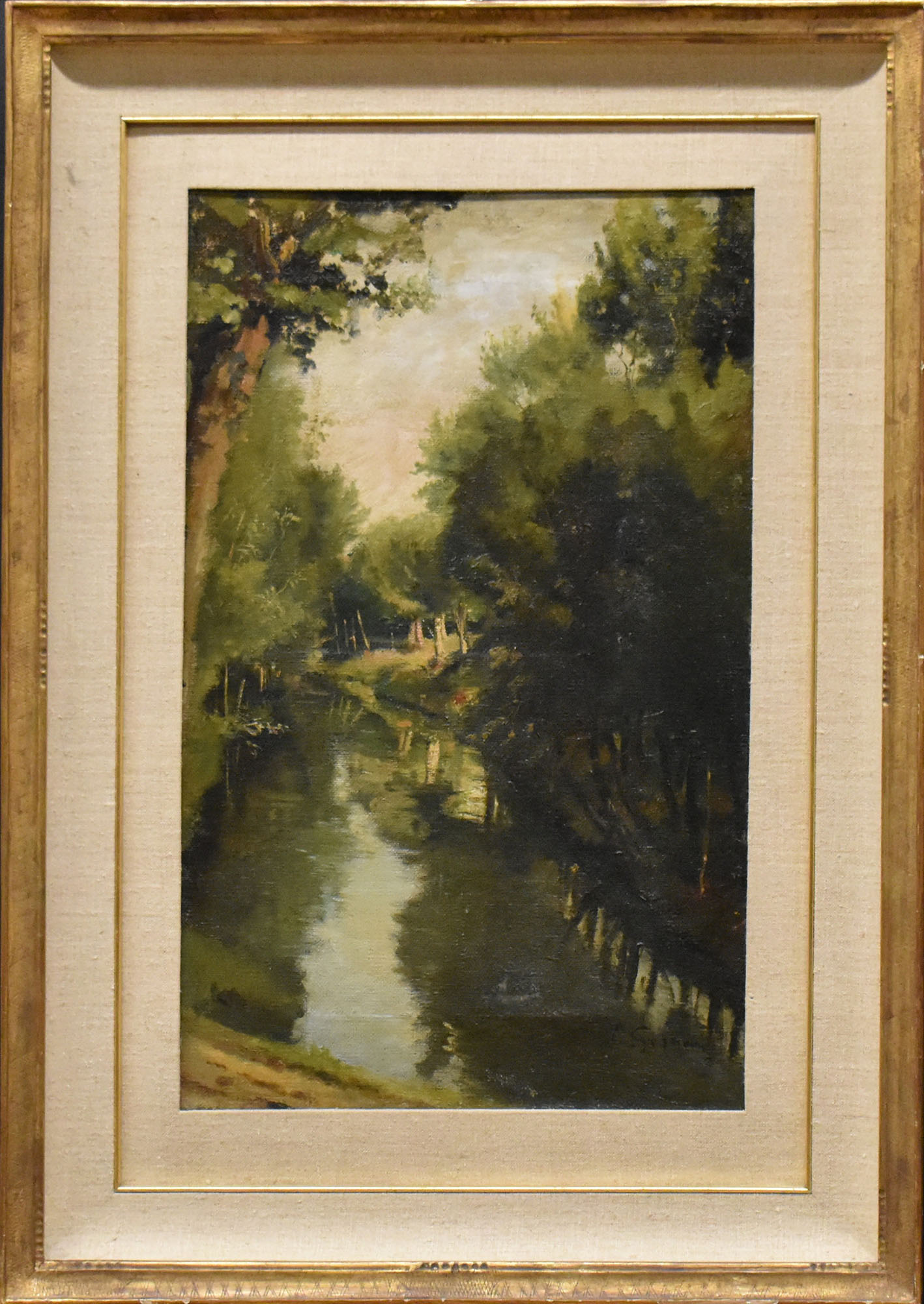 'Corso d'acqua alberato' olio su tela firmato in basso a destra