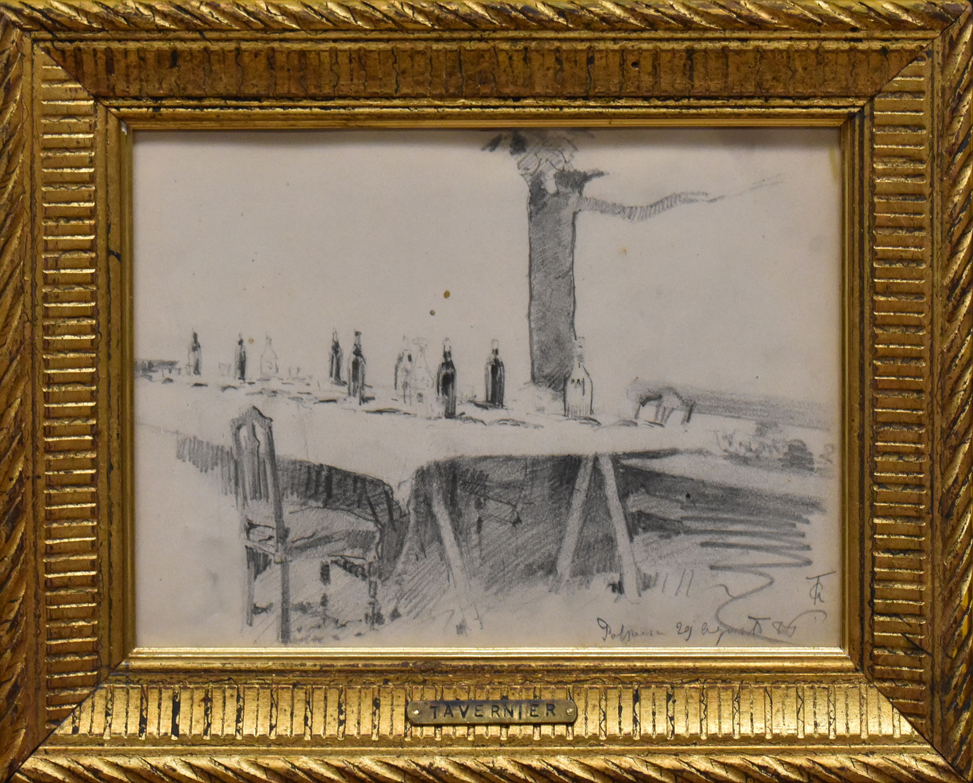 Andrea Tavernier (1858-1932) 'Tavola imbamdita' disegno su carta monogrammato in basso a destra Polpresa 29 agosto 86