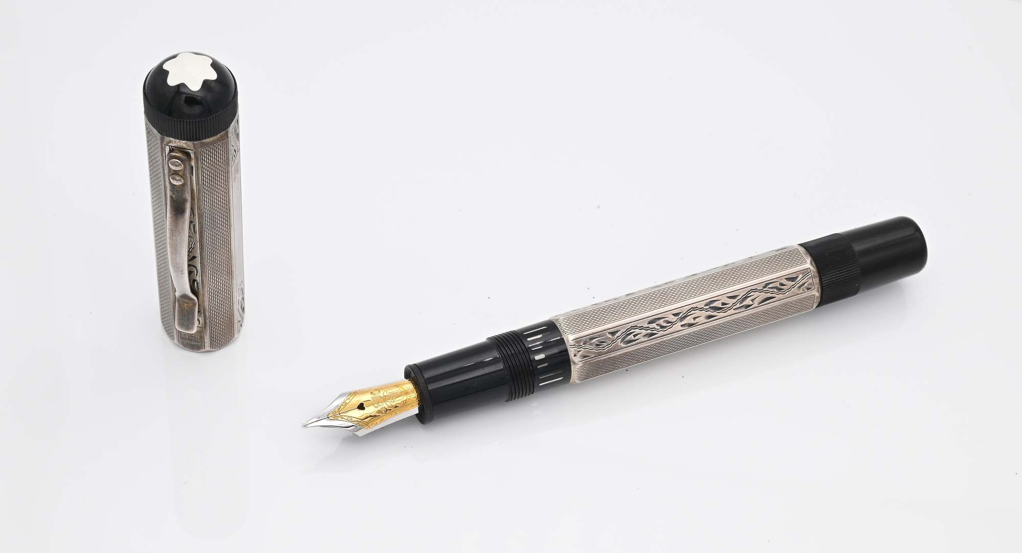 Montblanc Lorenzo De' Medici Patron of Art Limited Edition series 17276 - Penna Stilografica in argento sterling 925/000 riccamente incisa e firmata a mano (incisore ZH) 1992 Come nuova. Mai usata. Penna da esposizione in negozio. Pennino M in oro bicolore 18 Kt. Edizione limitata a 4810 esemplari, Ns. N. 0044. Con astuccio in legno originale. This is the first of MontBlanc’s famed 4810 Patron of Art Limited Edition series.