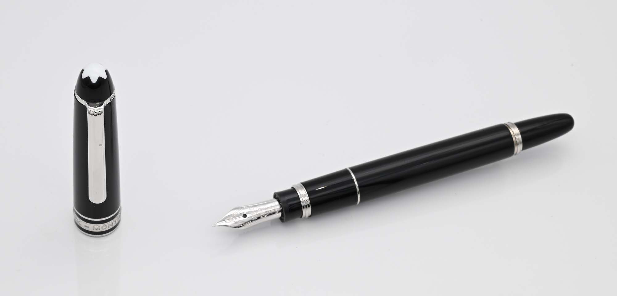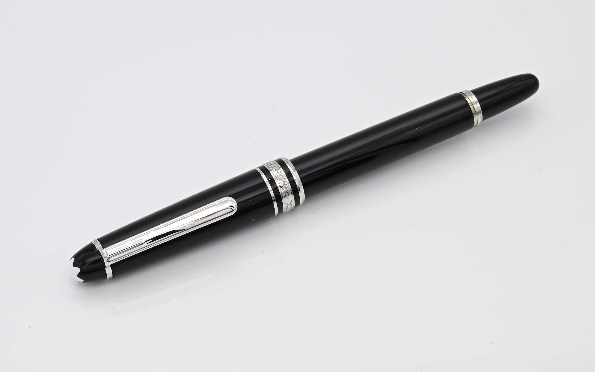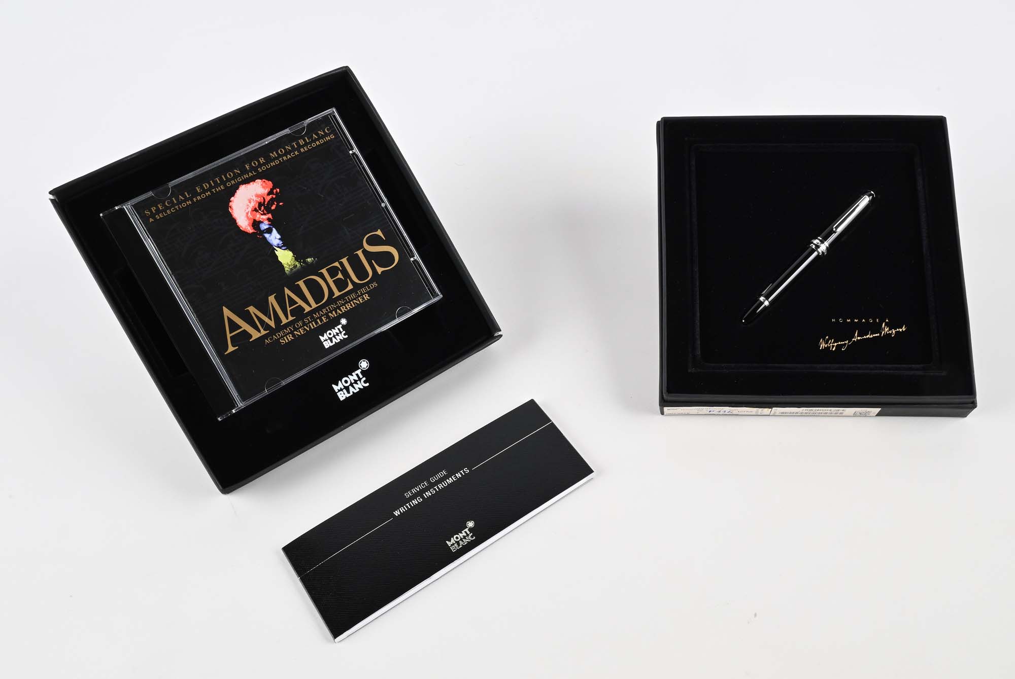 Montblanc Meisterstuck Hommage a Mozart - Penna Stilografica mini in resina nera con particolari color platino (Mod. 114) Come nuova. Mai usata. Fondo di negozio. Nr. CW1263611. Pennino M in oro bianco 14 Kt. Entro astuccio di altra penna Mozart con contro scatola di cartone, istruzioni e garanzia originali