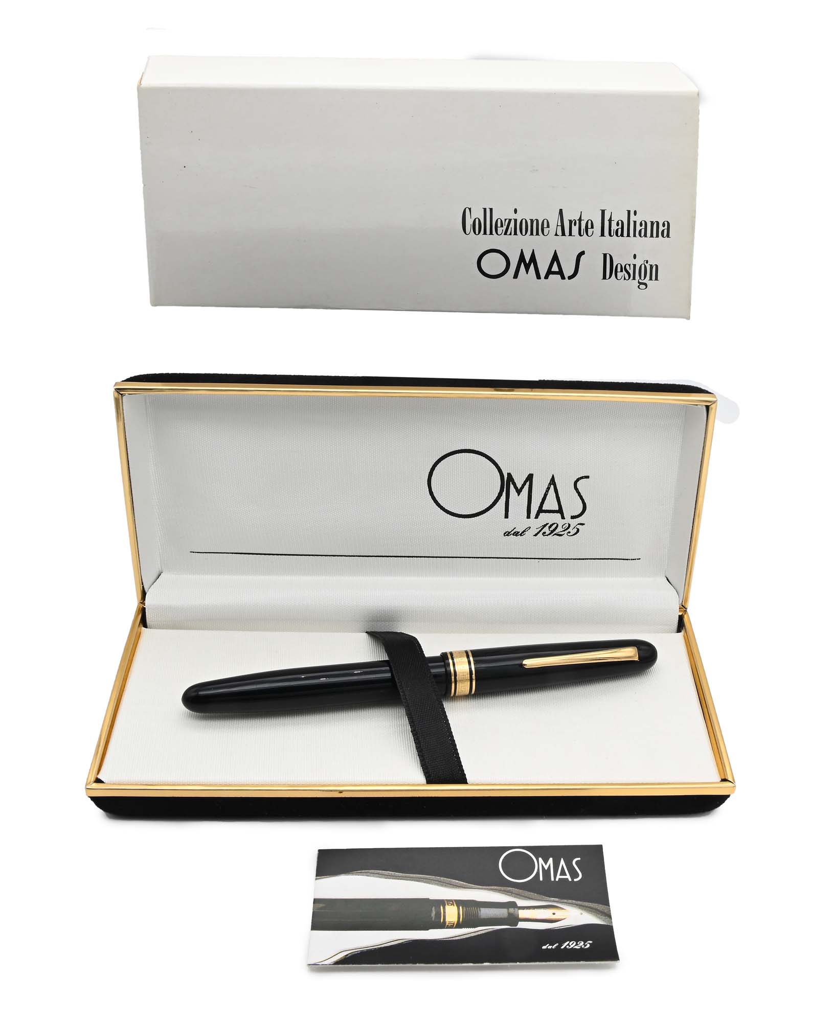 Omas Extra 555/S - Penna stilografica in vernice con particolari dorati Pennino M in oro giallo 14 Kt. Entro astuccio con scatola di cartone ed istruzioni originali