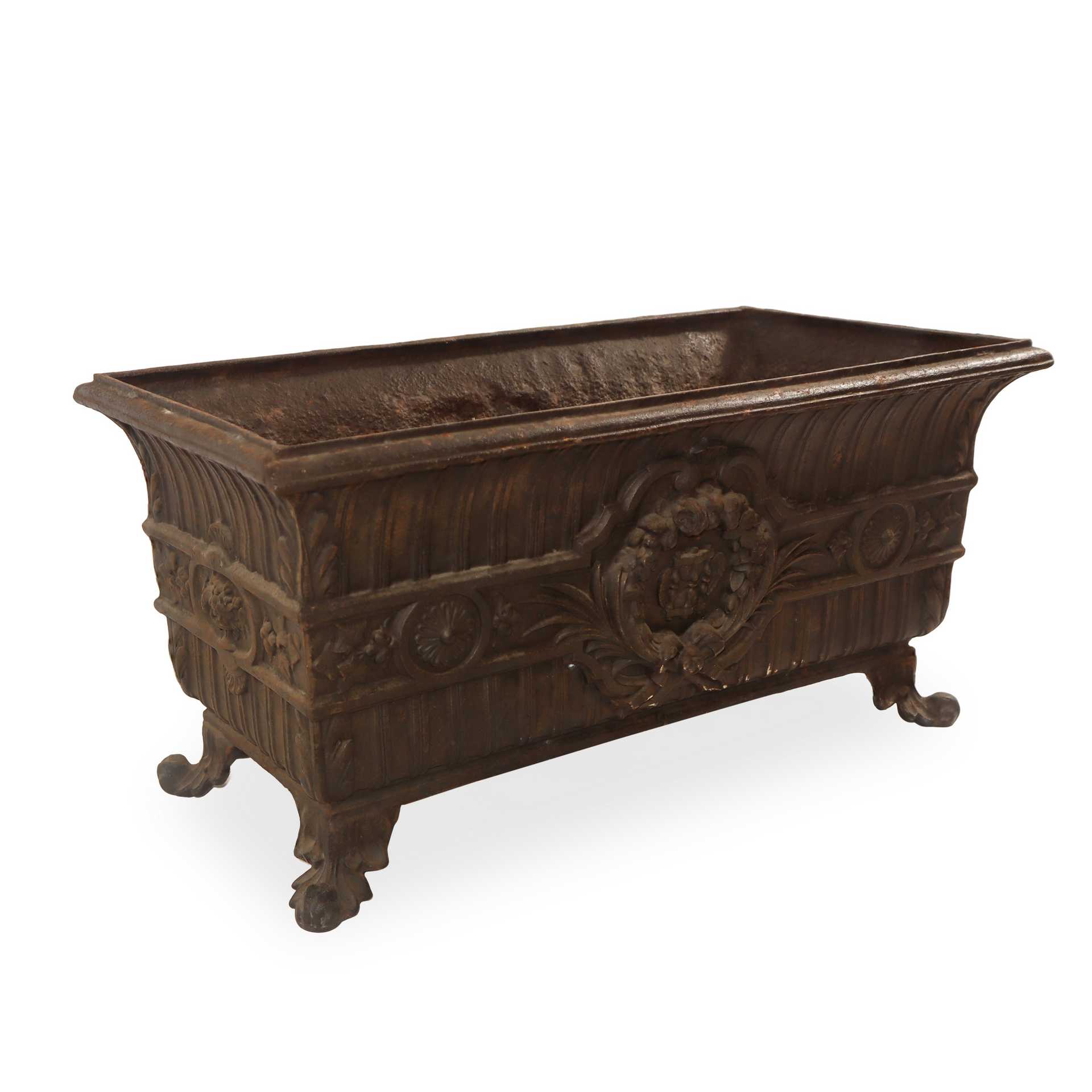 Fioriera in ghisa a cassetta stile neorinascimentale , 19° secolo h cm 35X71X37