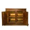 Grande credenza bassa in legno di noce, piano a becco di civetta sottolineato da dentellatura intagliata, due ante con gangheri cornice alla base, cassetto al sottopiano, due sportelli, fine 18° secolo