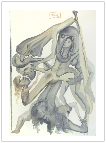 SALVADOR DALI’ Figueres (Spagna) 1904 – Figueres (Spagna) 1989 Les Limbes 1960 (dal girone dell’Inferno) Incisione su legno es.89/200. Firma stampata in a. al c.; in b. a d. timbro a secco Edizioni Pregiate, Roma; sul verso etichetta “Edizioni Pregiate, Roma” firmata dall’Editore + certificato Hotel Meurice, Parigi, firmato dall’autore. (33 x 26 carta – 25 x 18 inc.) Pubbl.: “Dalì Catalogue Raisonnè of Prints, vol. II° Lithographs” a cura di Ralf Michler & Lutz W. Lopsinger, n.1042.