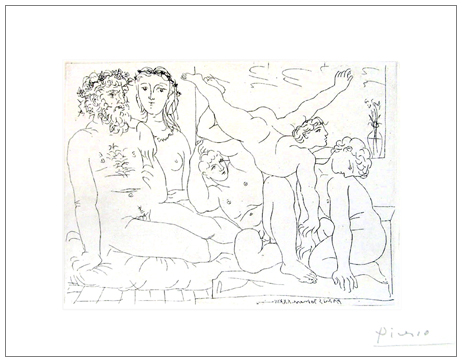 PABLO PICASSO Malaga (Spagna) 1881 – Mougins (Francia) 1973 Saltimbanques 1933 Acquaforte su carta vergata Montval con filigrana “Picasso”. Firma in b. a d.; sulla lastra in b. a d., rovesciate, località e data. (34,5 x 44,4 foglio – 19,4 x 26,7 inc.) Editore: Ambroise Vollard, Parigi. Stampatore: Lacourière, Parigi, 1939. Pubbl.: -“Pablo Picasso – Catalogue de l’oeuvre gravé et lithographié 1904-1967” a cura di G. Bloch, Edizioni Korenfeld et Klipsteein, Berna, vol.I, n.163. - “Picasso peintre graveur - Catalogue Raisonné de l’oeuvre gravé et des monotypes” a cura di B.Geiser, edizioni Kornfeld et Klipstein, Berna, 1968, tomo II. - “Picasso peintre graveur” a cura di B. Bear, Edizioni Korenfeld, Berna, 1989, n.316. - Cat. Asta Minerva Auctions, Roma, 14 novembre 2013, lotto n.30.