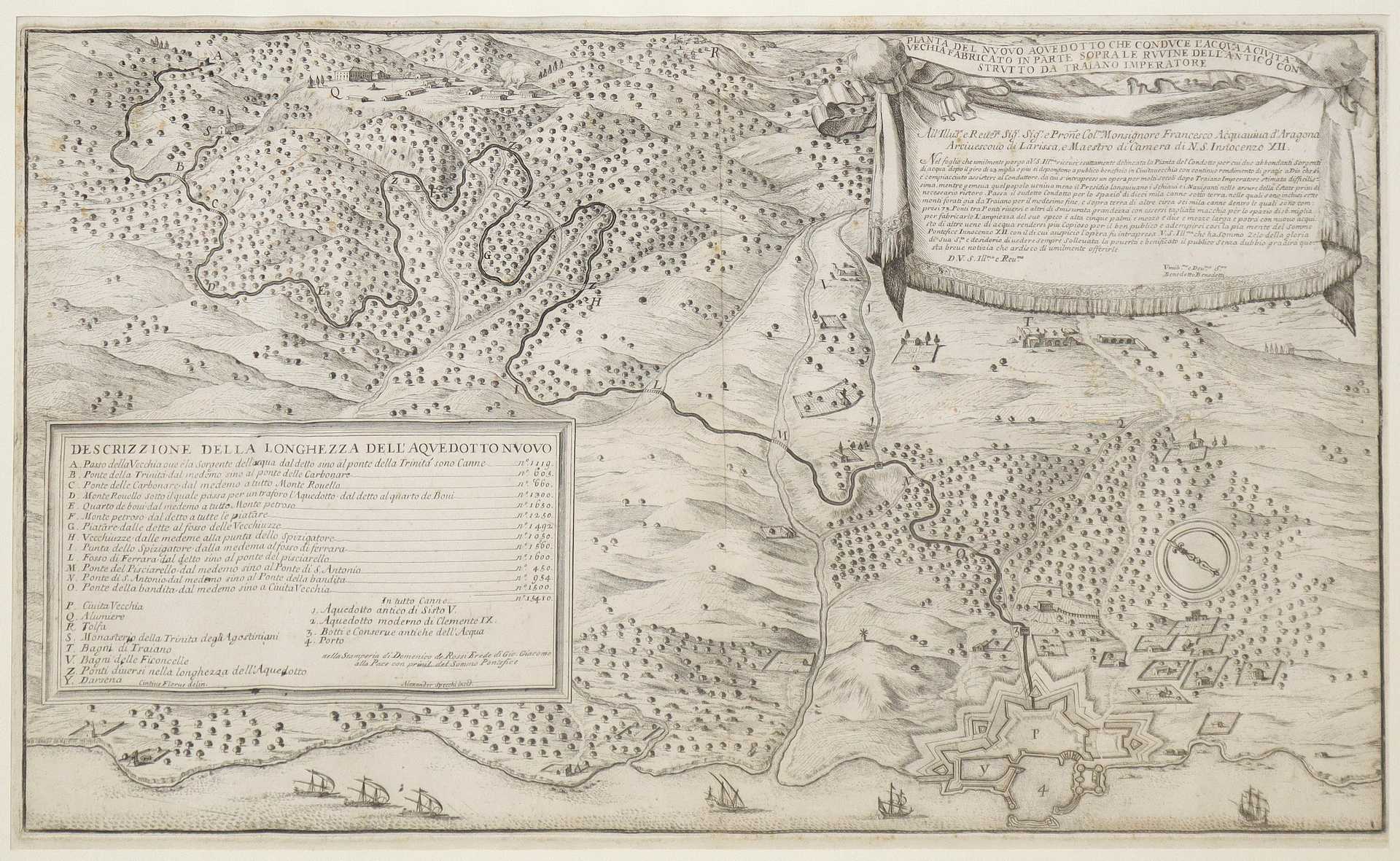 “Pianta del nuovo aquedotto che conduce l'acqua a Civitavecchia fabricato in parte sopra le ruvine dell'antico construtto da Traiano Imperatore”