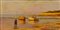 Renuccio Renucci (Livorno 1880 - 1947) BARCHE E PESCATORI Olio su tavola, cm. 39x75 Firmato in basso a destra.