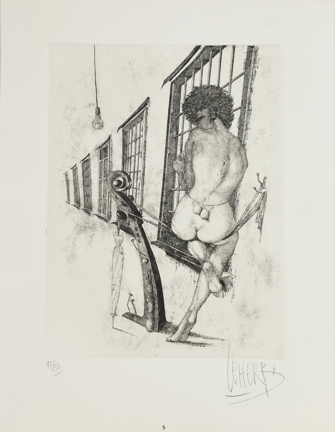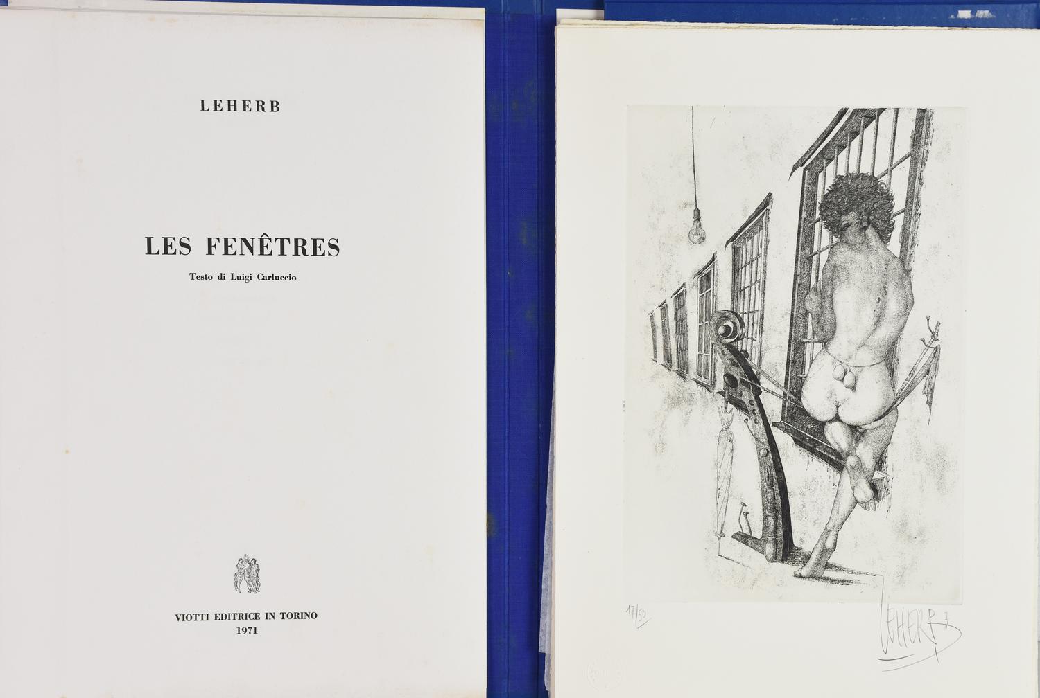 Helmut Leherb LES FENETRES, 1971 cartella contenente 5 acqueforti e testi di...
