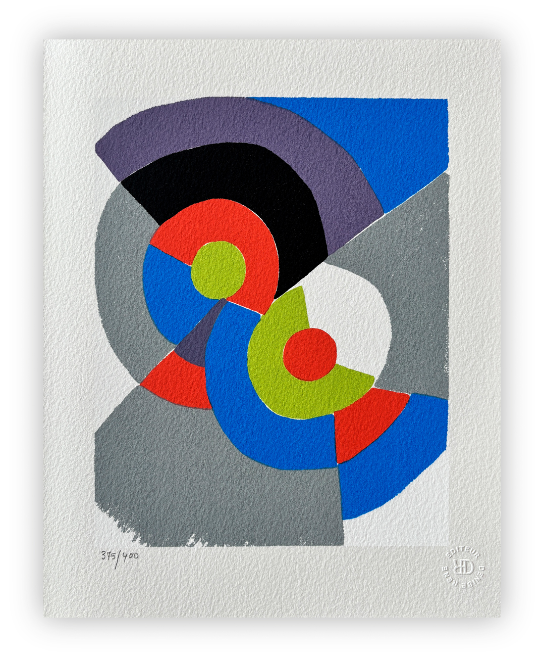 Pieghevole augurale con una stampa di Sonia Delauney "Rythme couleur" edito da Denise René in 400 esemplari numerati (Esemplare 375/400)
