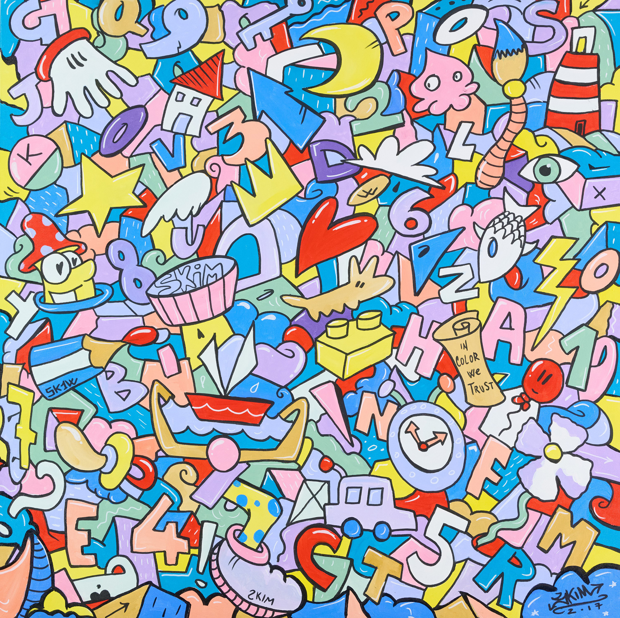 Skim (Firenze, 1985) Lettere e numeri nel caos 2017 Acrilico su tela cm....