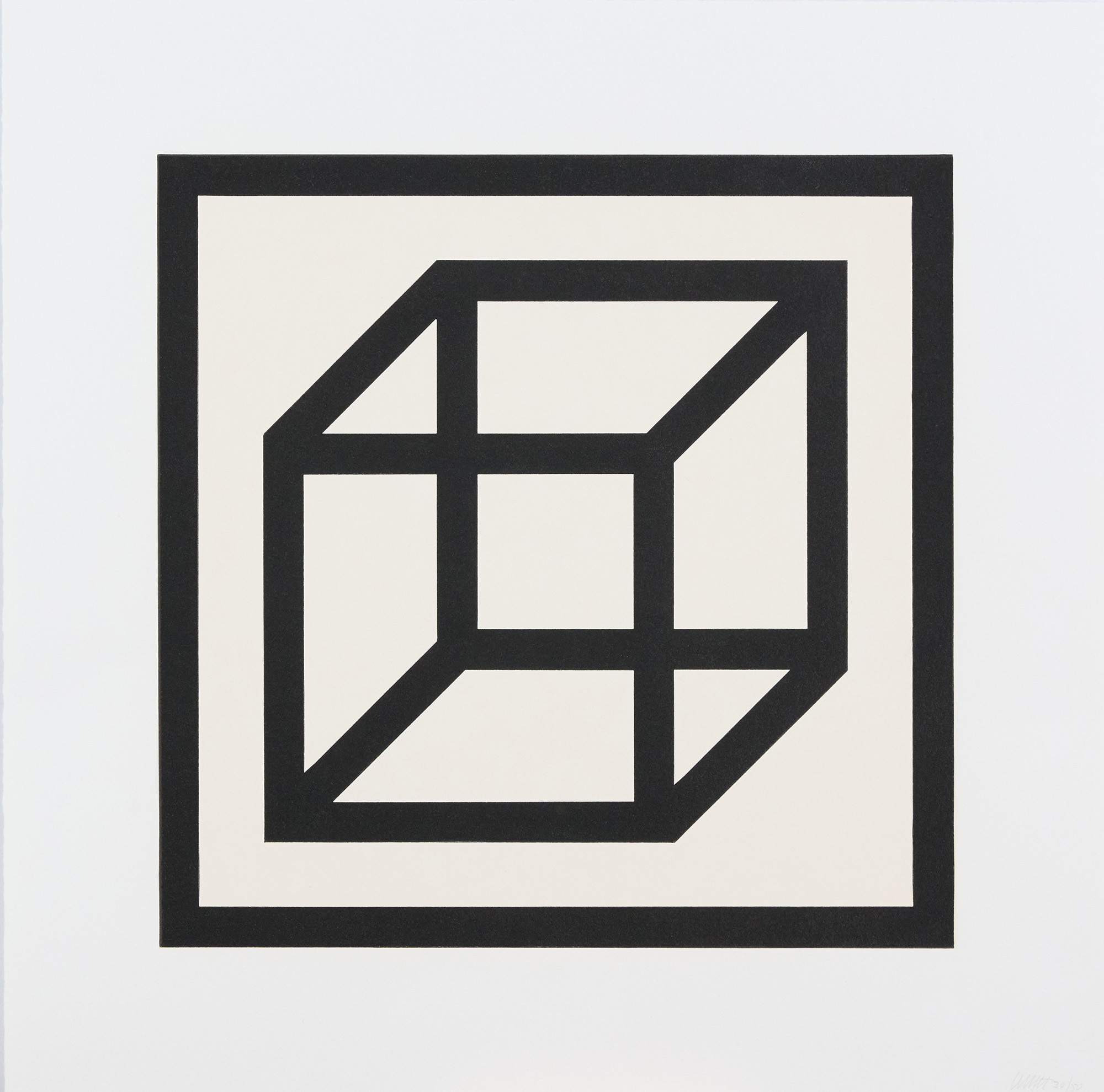 Sol Lewitt (Hartford, 1928) Open cube in black on white 2004 Linoleumgrafia...