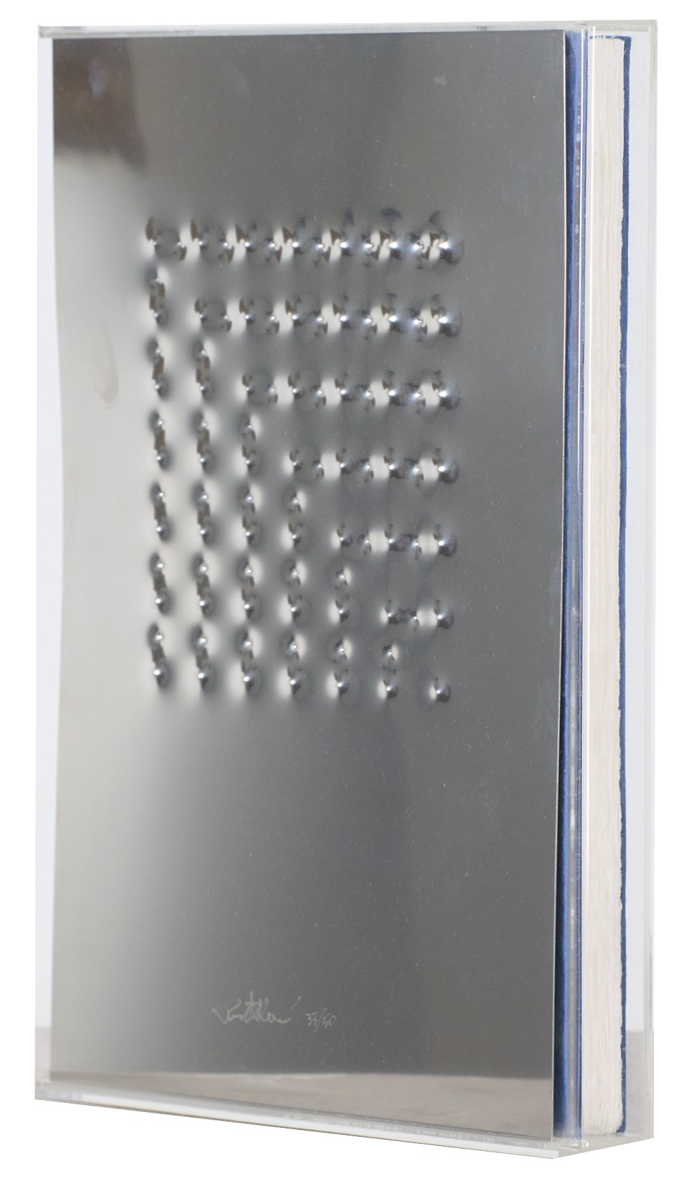 L'opera e l'antologia sono racchiuse in un piedistallo di plexiglass.