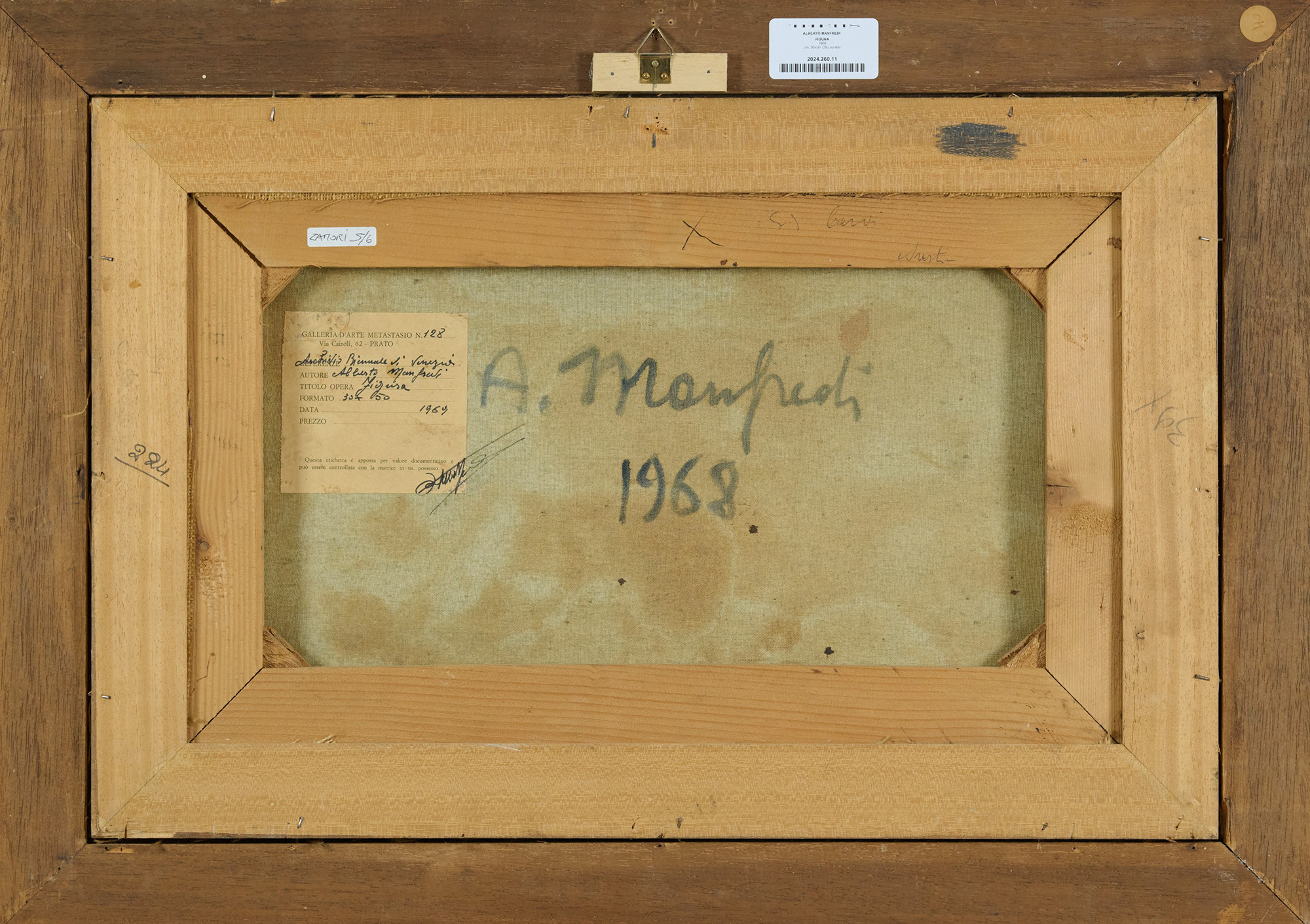 Sul verso: firma, data ed etichetta "Galleria d'Arte Metastasio", Prato, con descrizione.