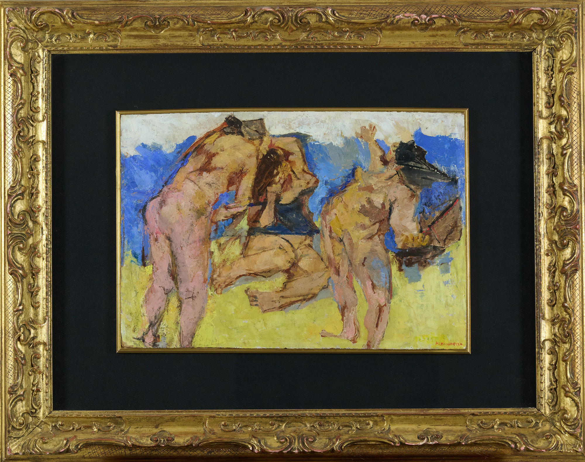 Fausto Pirandello (Roma, 1899 - Roma, 1975) Bagnanti Olio su tavola cm....