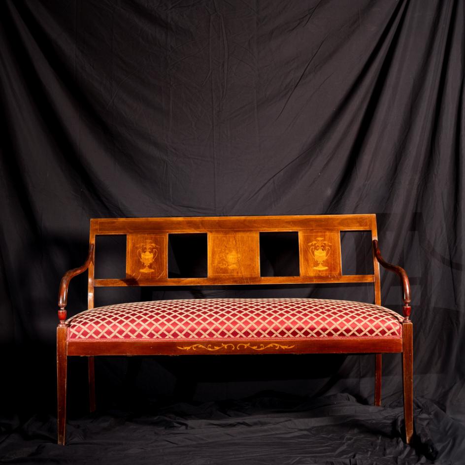 Divanetto intarsiato liberty, Primi del '900 Divanetto liberty in legno di...