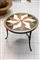 Tavolino da caffè in ferro battuto e mosaico di marmi policromi, 68x68 cm