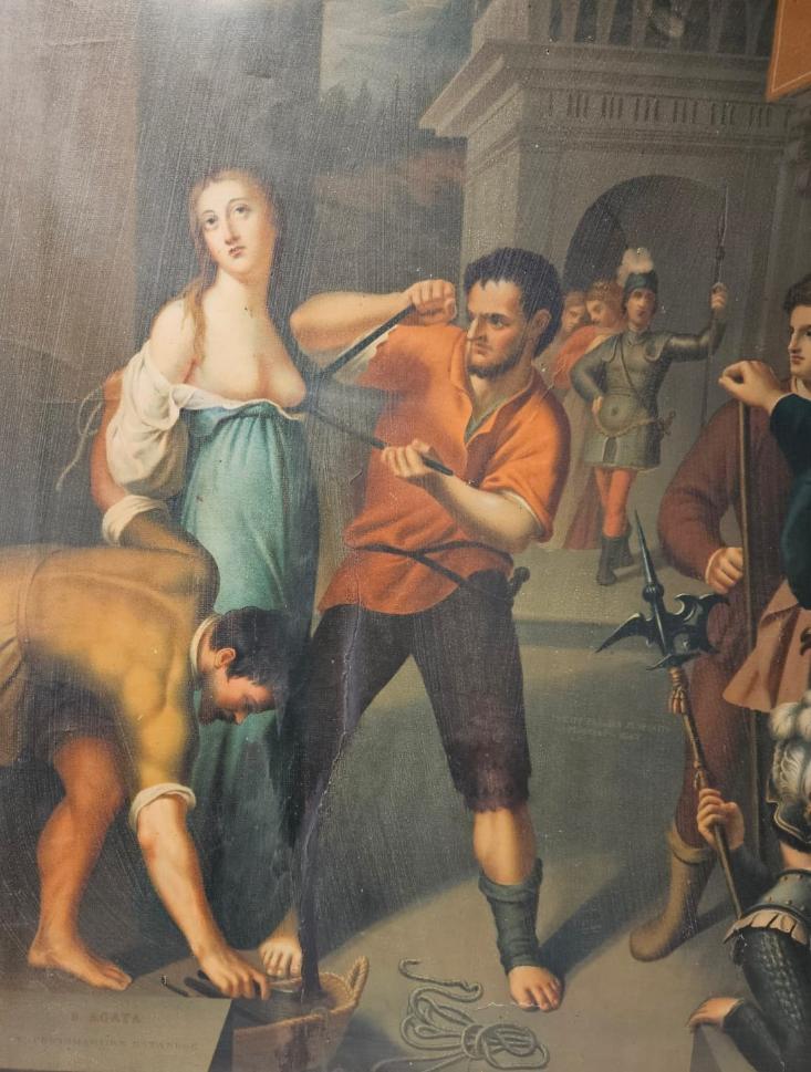 Martirio di Sant'Agata Oleografia su tela 81x60,5 cm In cornice 92x71,5 cm