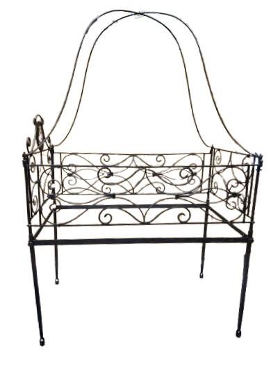 Lettino in ferro battuto con lumeggiature in oro antico e dipinto coevo su ferro, seconda metà XIX secolo