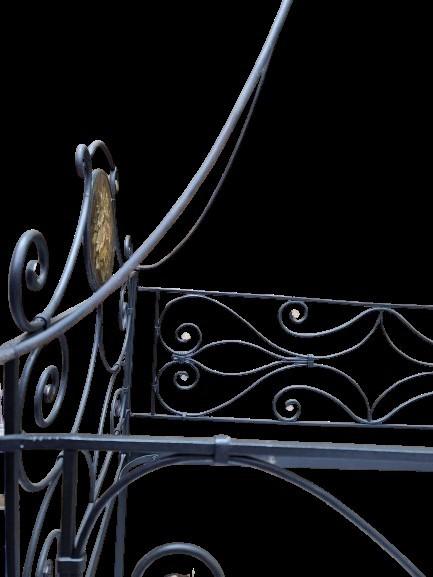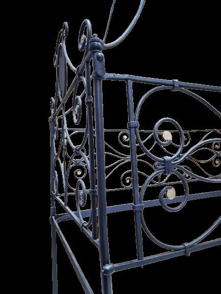 Lettino in ferro battuto con lumeggiature in oro antico e dipinto coevo su...