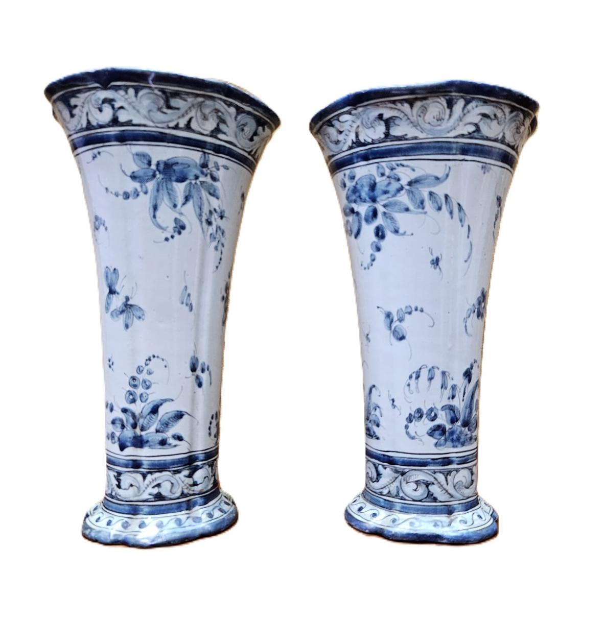 Coppia di vasi firmati Cantagalli con decorazione florale, Fine XIX secolo