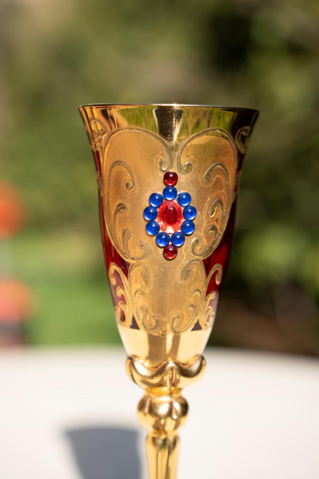 N. 6 bicchieri da champagne in vetro di Murano in smalto e foglia oro 24kt,...