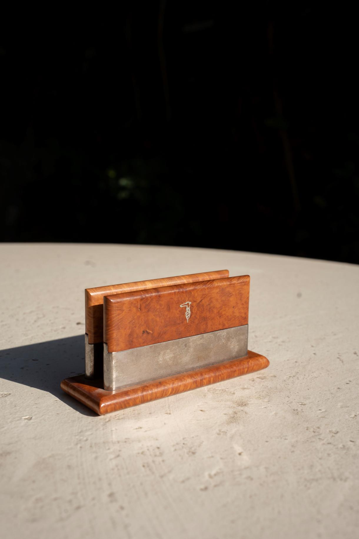 Set per scrivania Trussardi, posacenere e portacarte, 1970 ca.