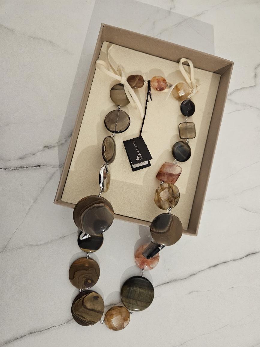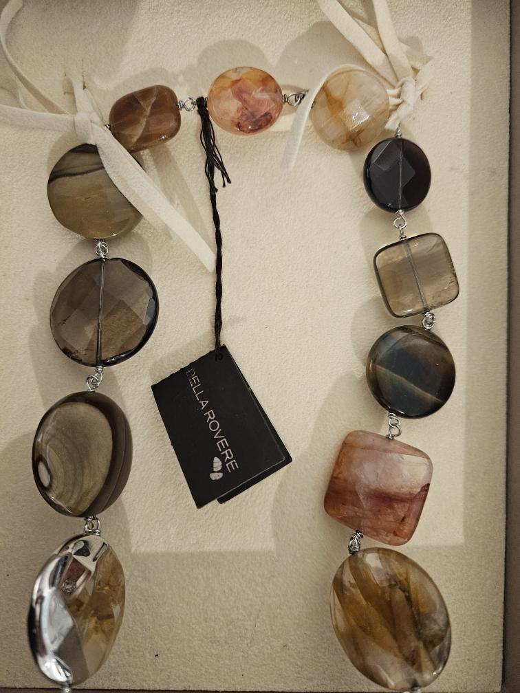 Collana in argento con pietre dure simil occhio di tigre e agata Della Rovere