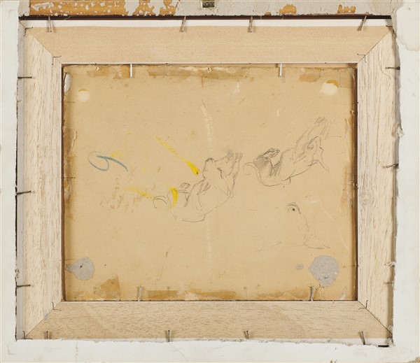 Plinio Nomellini "Selvaggi all'Isola d'Elba" olio su cartoncino (cm 19,5x24) al