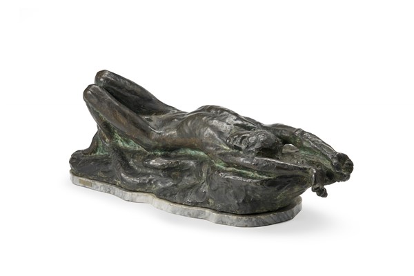Valmore Gemignani "Uomo sdraiato" scultura in bronzo (cm 30x72x20) poggiante su