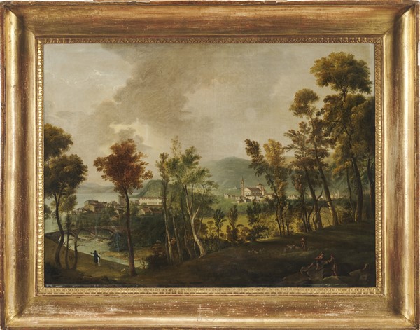 Pietro Ronzoni "Paesaggio" olio su tela (cm 71x97) reca tracce di firma in bass