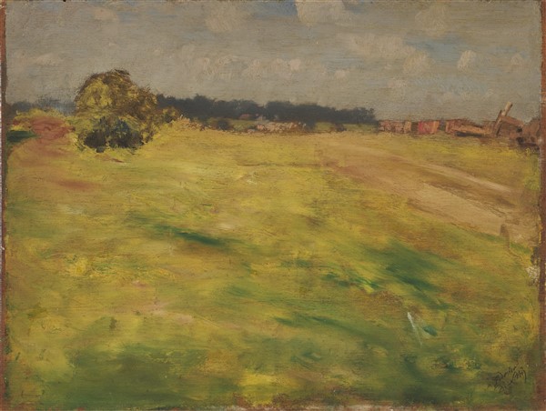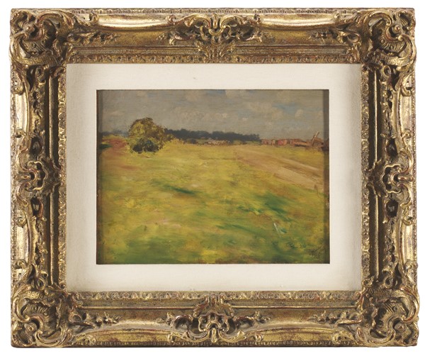 Giuseppe De Nittis "Paesaggio con grande prato" olio su tavola (cm 27x34) firma