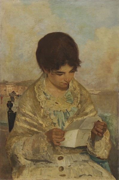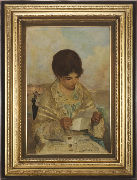 Edoardo Dalbono "La lettera" olio su tela (cm 80x51) firmato in basso a sinistr