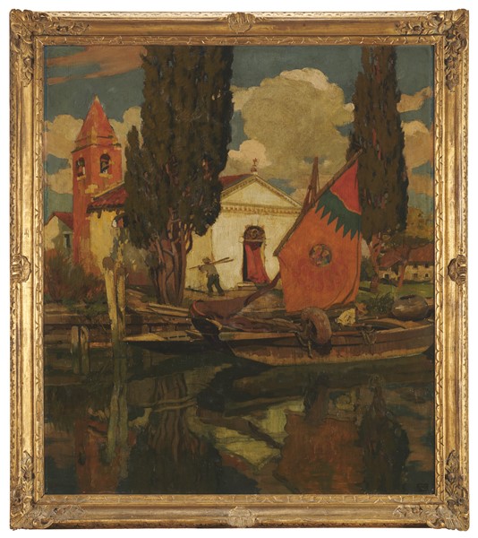 Vittore Zanetti Zilla "Chiesetta sull'acqua, Santa Rosa" 1933 olio su compensato