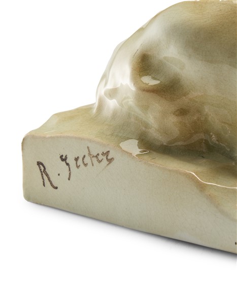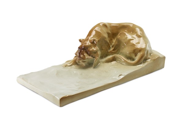 Lot 142 | Robert Greter "Tigre" scultura in ceramica (cm 10x32x18) firmata alla base (di