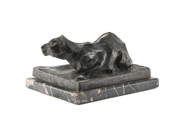 Robert Greter "Pantera" scultura in bronzo (cm 9,5x21x16) su base in marmo (h c